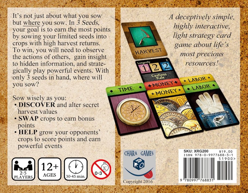 It’s not just about what you sow but where you sow. In 3 seeds, your goal is to earn the most points by sowing you limited seeds into crops with high harvest returns. To win, you will need to observe the actions of others, gain insight to hidden information, and strategically play powerful events. With only 3 seeds in hand, where will you sow?