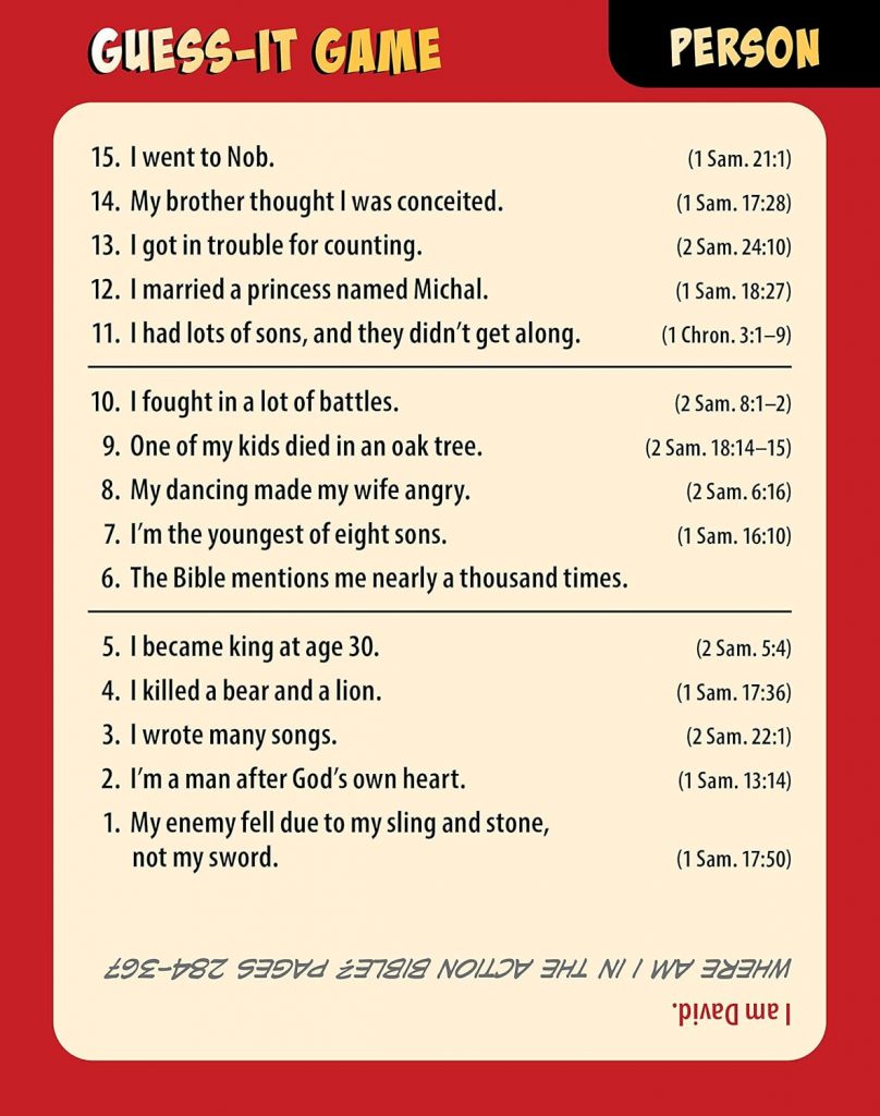 If your kids like The Action Bible, they’ll love The Action Bible Guess-It Game. Testing your knowledge about the Bible has never been more easy and fun!